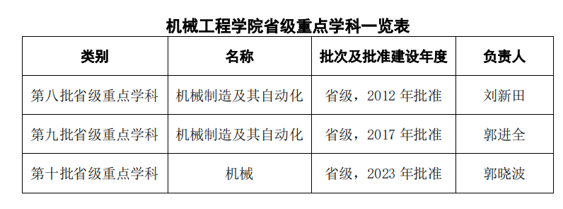 机械工程学院省级重点学科一览表