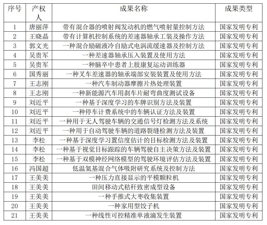 2023年机械工程学院专利一览表