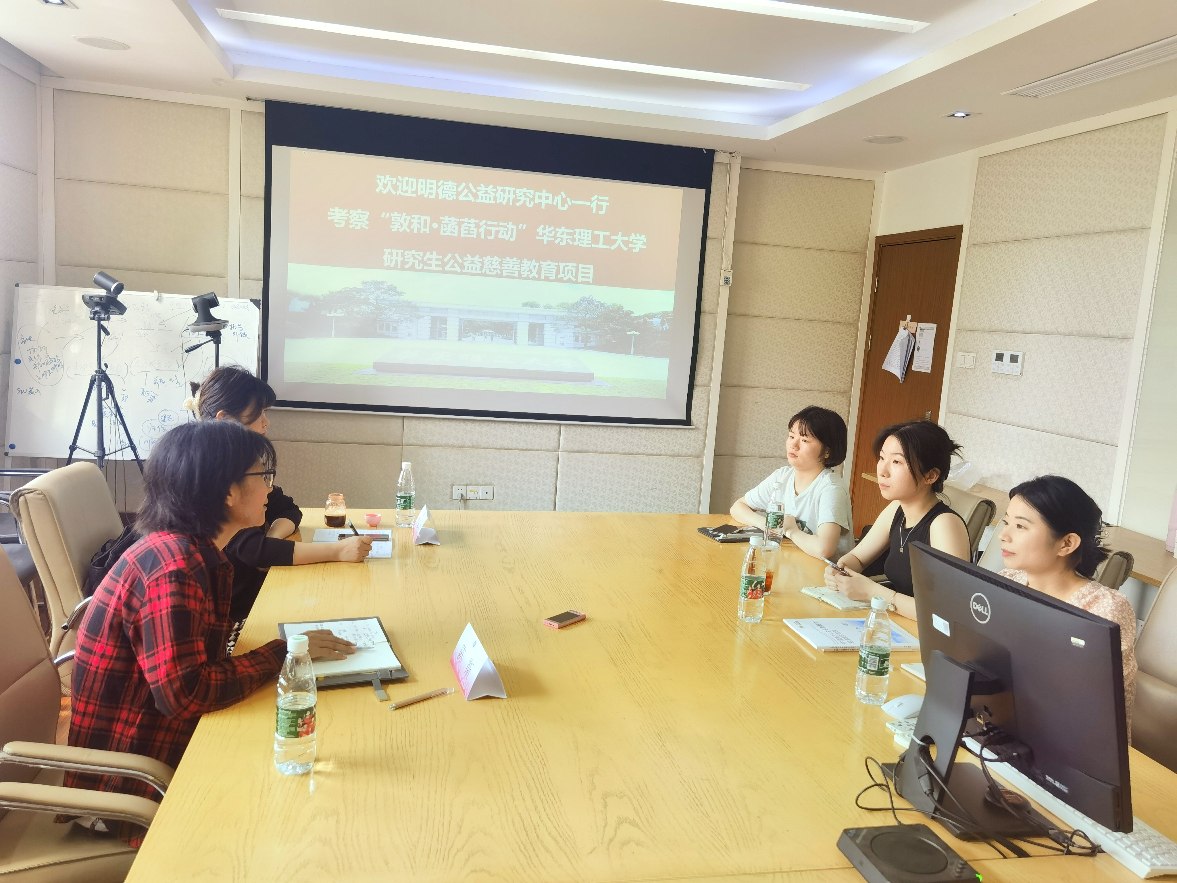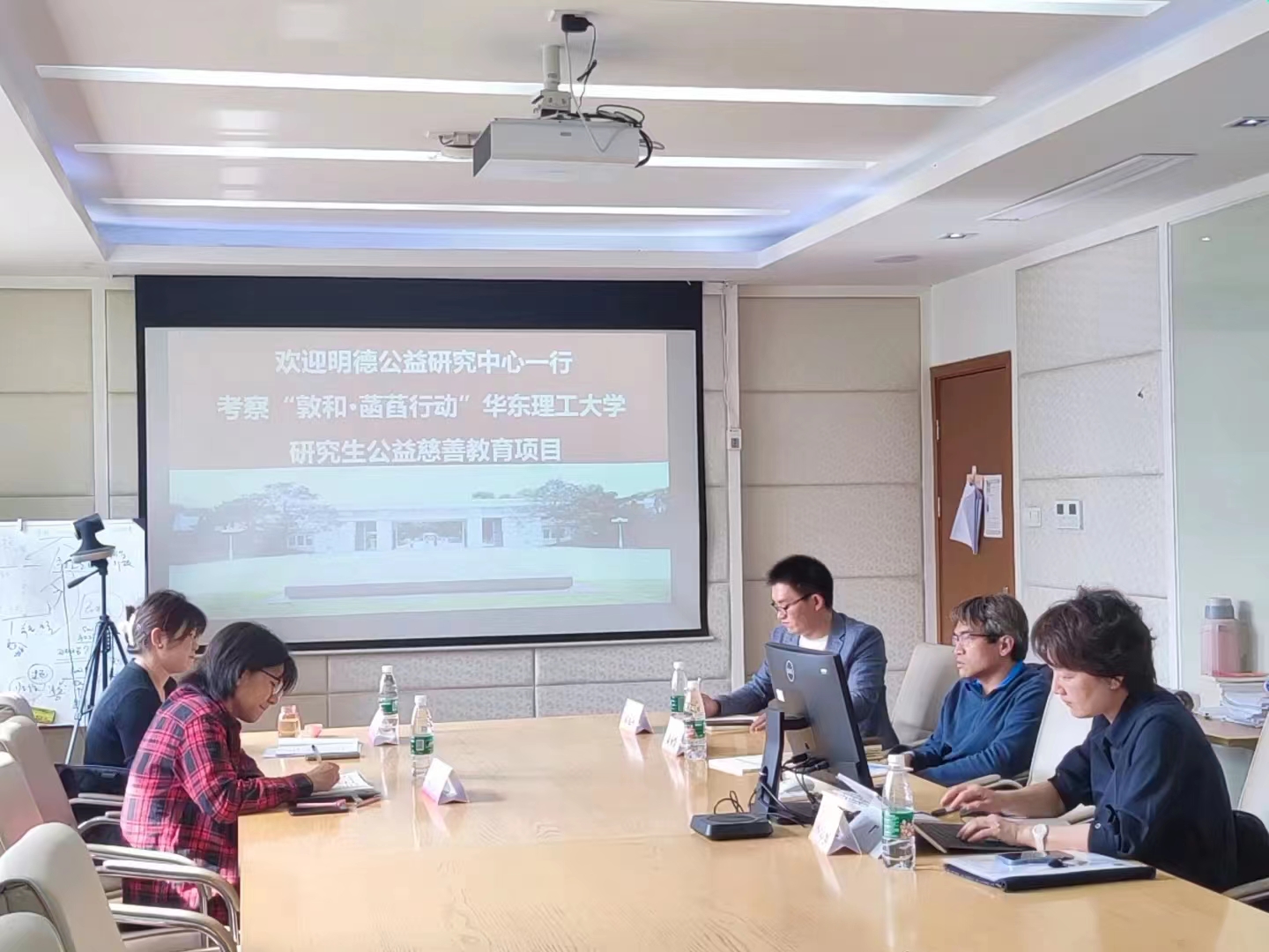 2023年4月18日下午,明德公益研究中心项目总监陈斯和项目主管李春双一行考察了“敦和·菡萏行动”必赢76net线路官网研究生公益慈善教育项目,必赢76net线路官网社会工作系陈蓓丽、萧易忻、徐选国以及研究生王曼曼、赵梦帆、邓媛媛等师生与明德公益研究中心老师共同就必赢76net线路官网的公益慈善教育项目实践进行了深度交流。